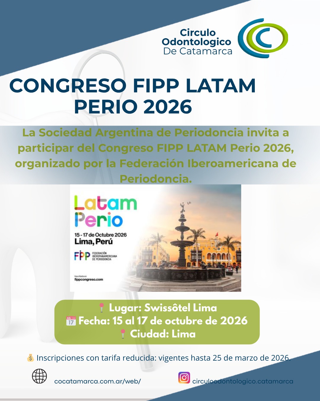 La Sociedad Argentina de Periodoncia invita a participar del Congreso FIPP LATAM Perio 2026, organizado por la Federación Iberoamericana de Periodoncia.